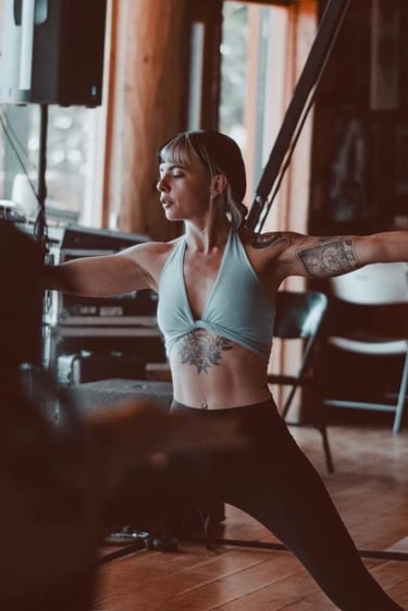 My passion for yoga began in 2014, and in 2019 I completed a 200hr Registered Yoga Teacher training through Life Time Fitness. I immediately began teaching both private sessions and studio classes, allowing my personal practice to evolve alongside my role as a teacher. These early years opened the door to meaningful travel and teaching opportunities, including guiding yoga at a healing sanctuary in Mindo, Ecuador, as well as multiple music and art festival settings across Utah and Colorado.